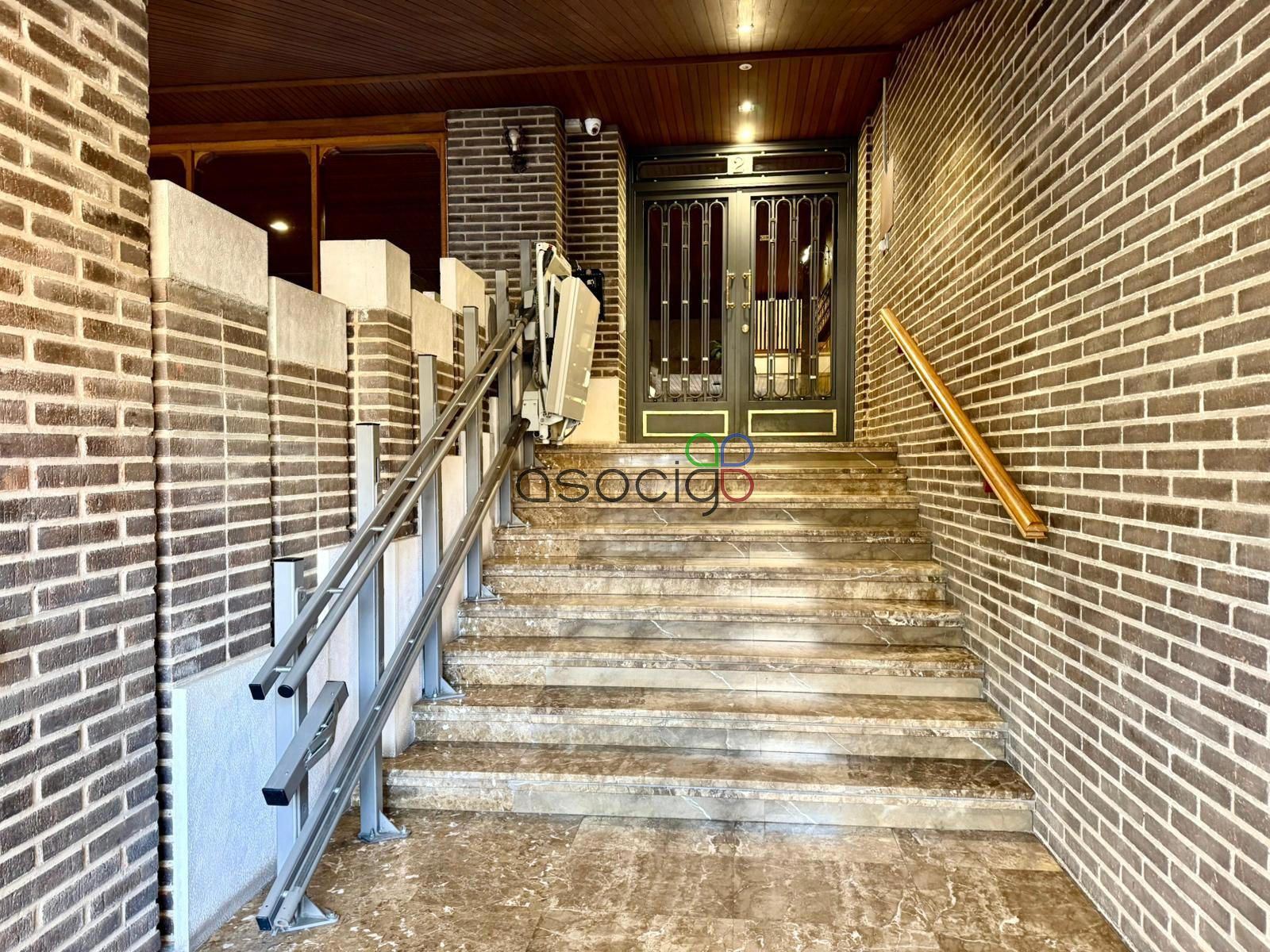 El acceso desde la calle al portal tiene una silla salvaescaleras para facilitar la entrada.