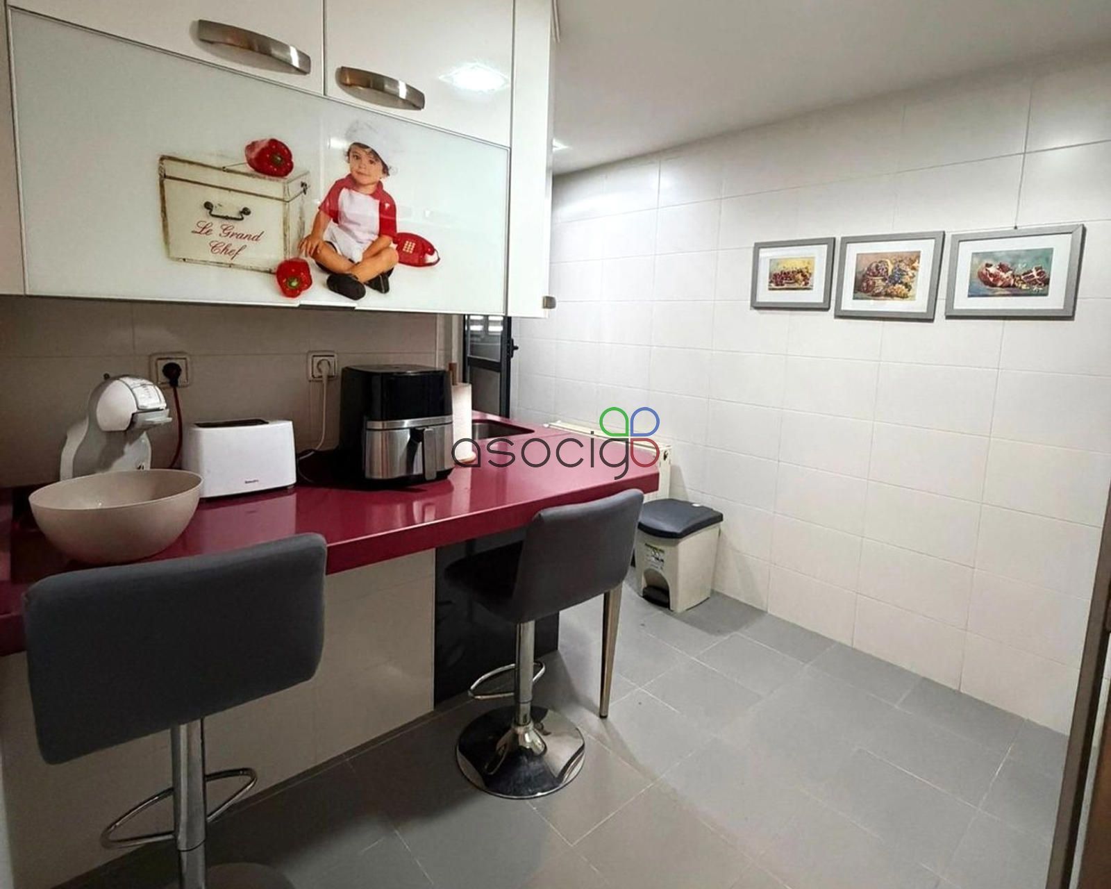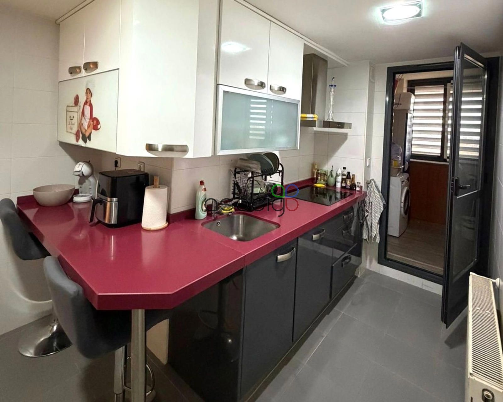 Cocina amueblada con terraza tendedero, 3 habitaciones y 2 baños con mueble y mampara (uno de ellos en la habitación principal).