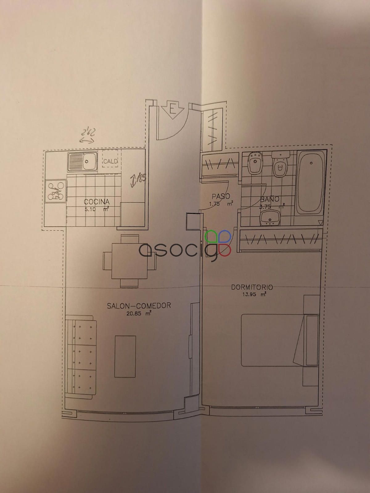 Primera planta con ascensor, que se distribuye en salón con cocina americana (no hay terraza), dormitorio con armario empotrado, recibidor con armario y baño completo.