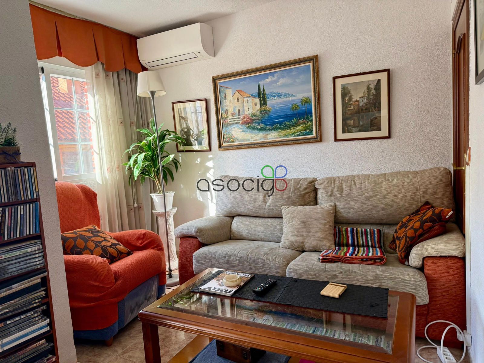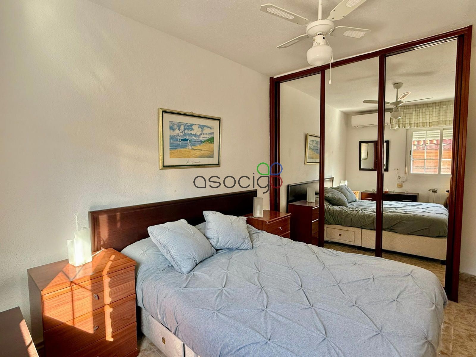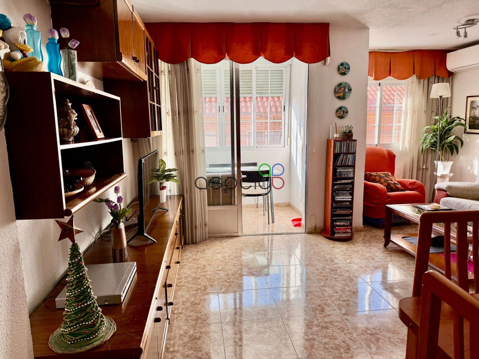 En origen, la vivienda constaba de 3 habitaciones, actualmente se ha añadido uno de los dormitorios al salón, consiguiendo un espacio más amplio y cómodo que además dispone de aparato de aire acondicionado. También encontramos una terraza cubierta y acristalada.