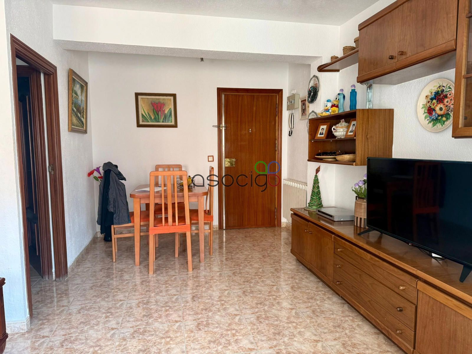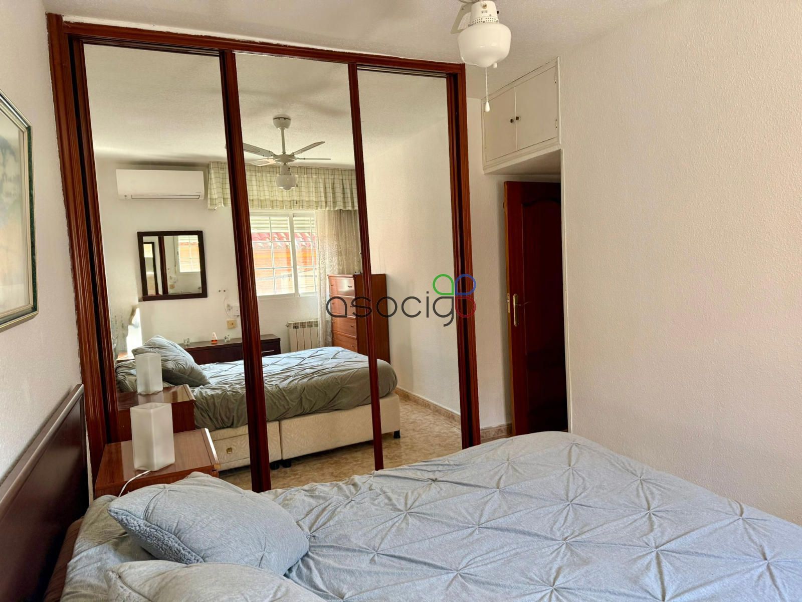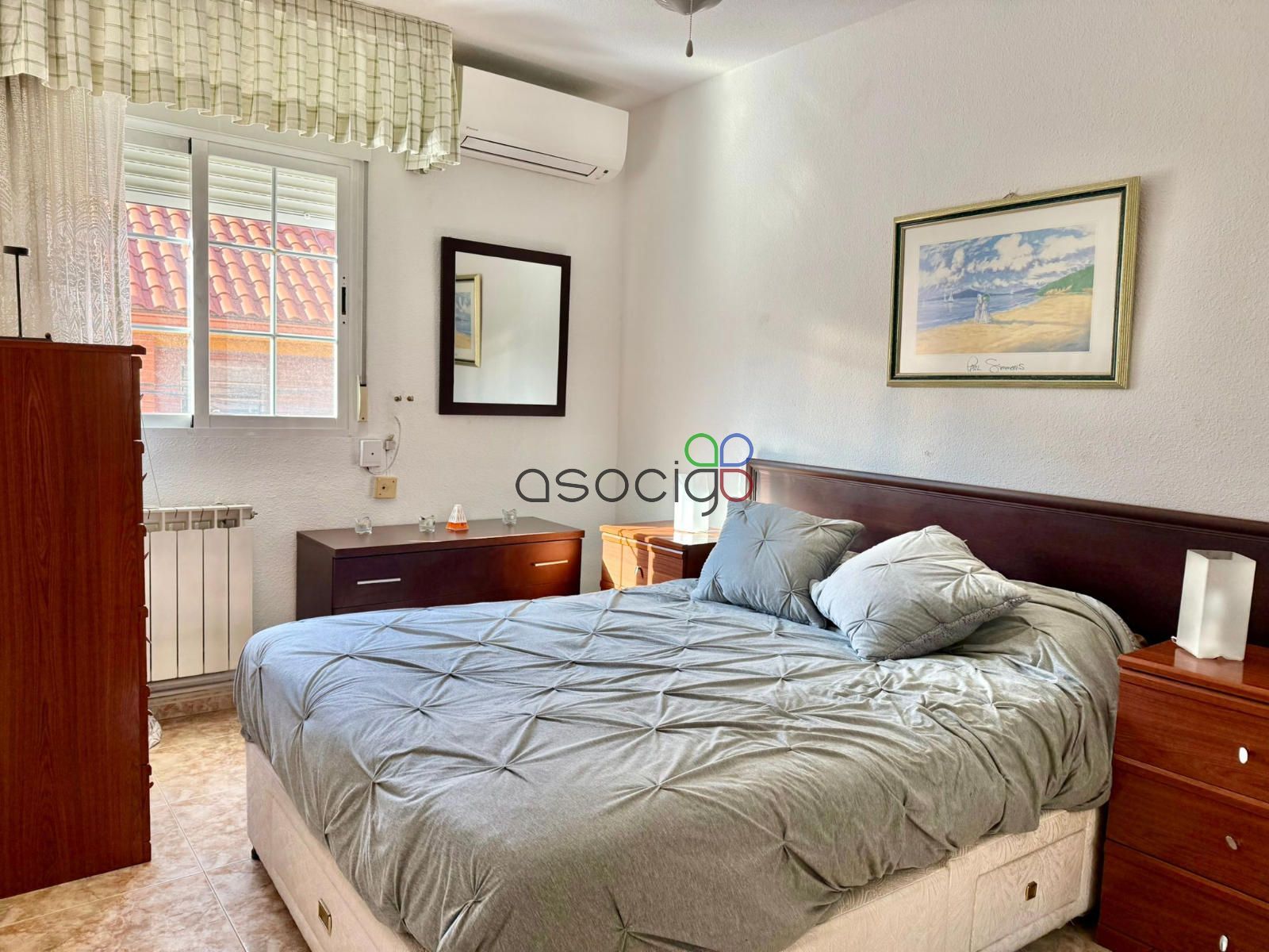 En origen, la vivienda constaba de 3 habitaciones, actualmente se ha añadido uno de los dormitorios al salón, consiguiendo un espacio más amplio y cómodo que además dispone de aparato de aire acondicionado. También encontramos una terraza cubierta y acristalada.