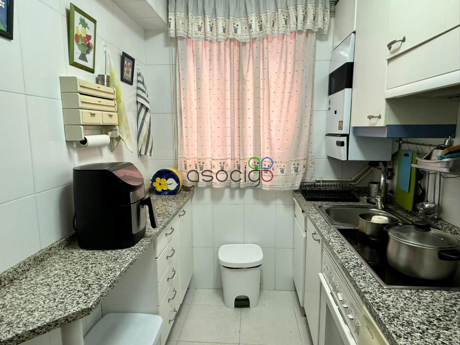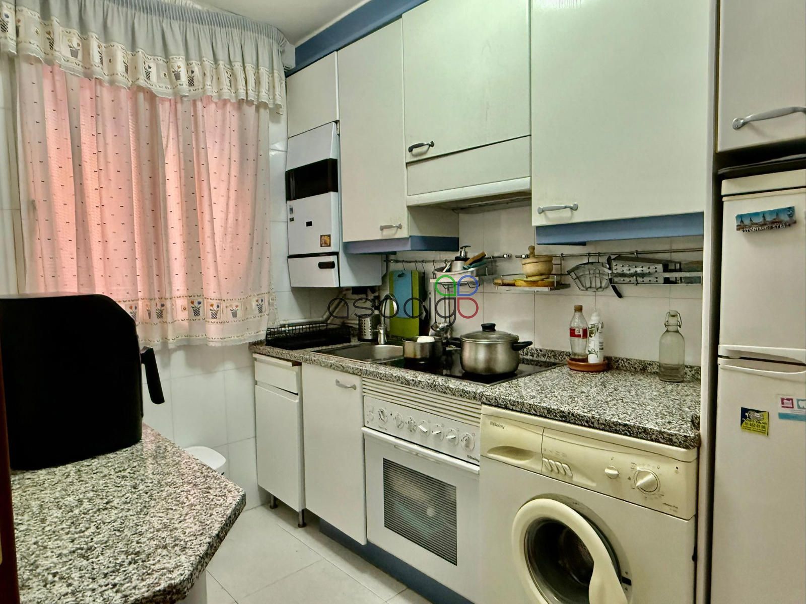 La cocina queda amueblada y en ella se está integrada la caldera para la calefacción y el agua caliente sanitaria, alimentada por gas natural.