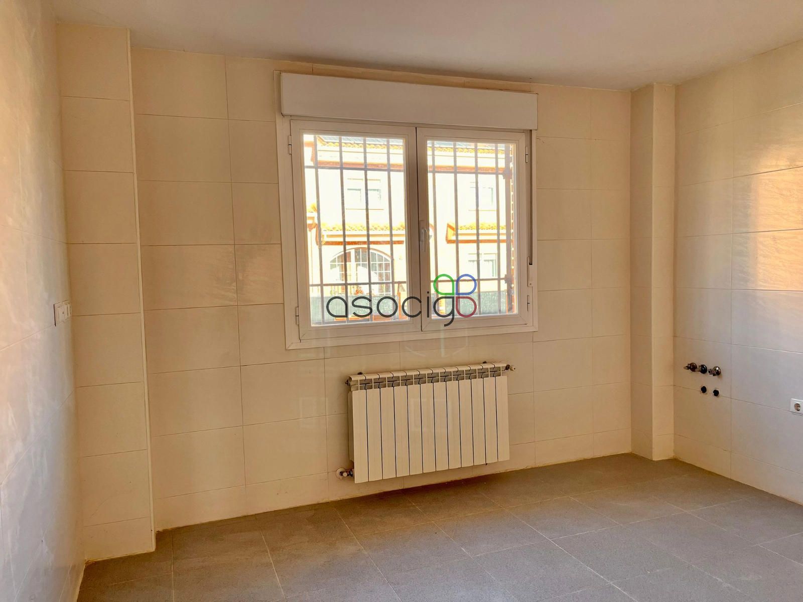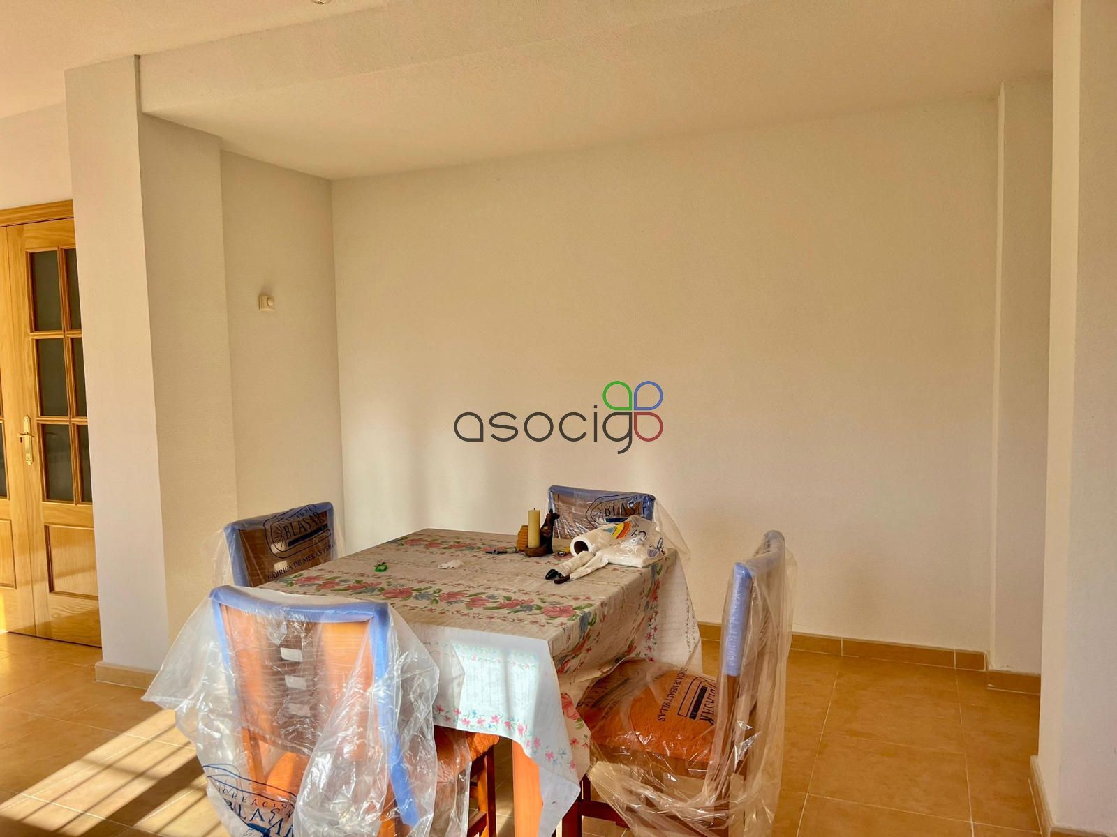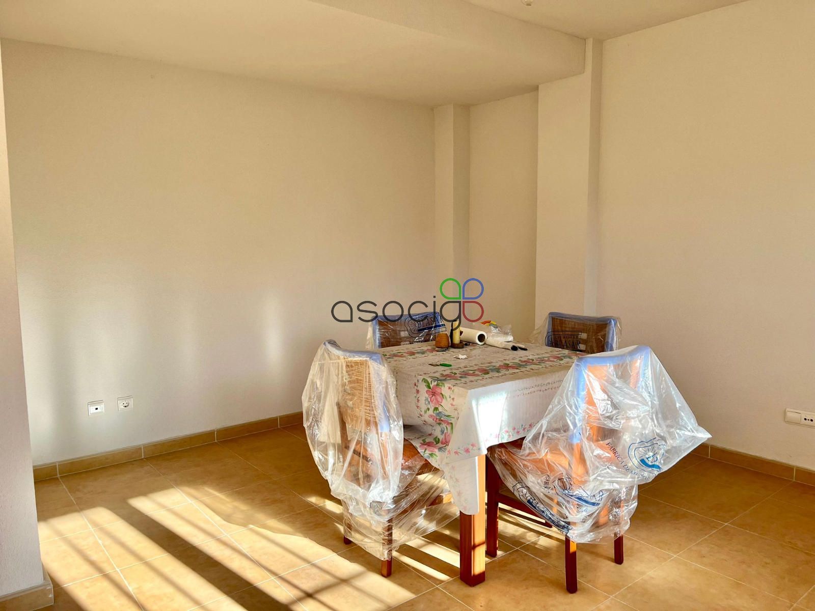 - Planta baja: desde el porche delantero, accedemos al recibidor que da paso al aseo exterior, a la cocina (muy cuadrada y amplia, que no está amueblada, ya que la vivienda nunca se ha habitado de manera regular) y al salón comedor. Orientado al sureste, muy luminoso y desde el que salimos al jardín.