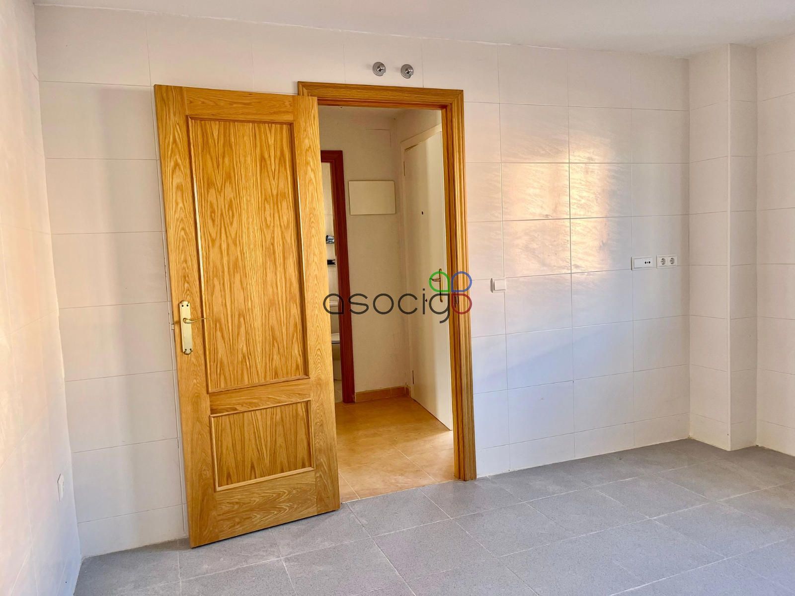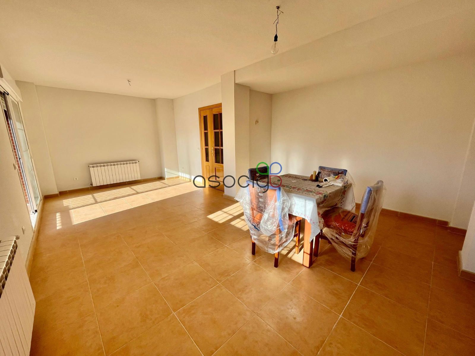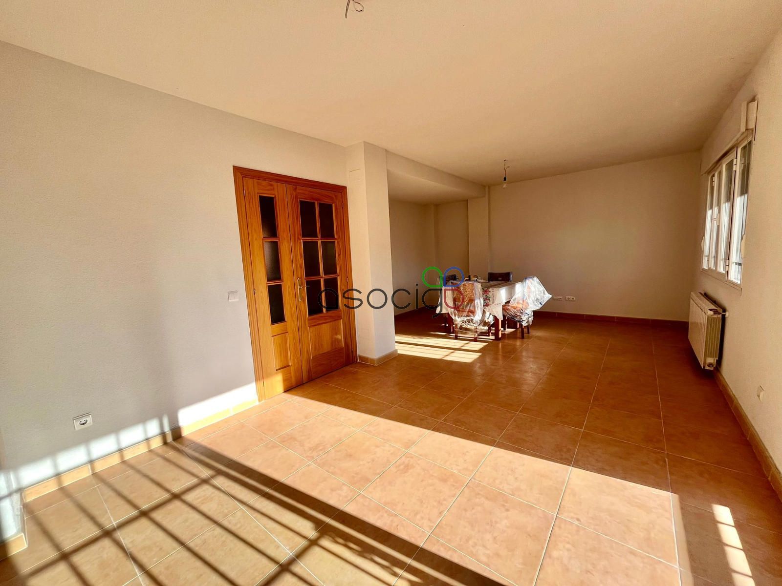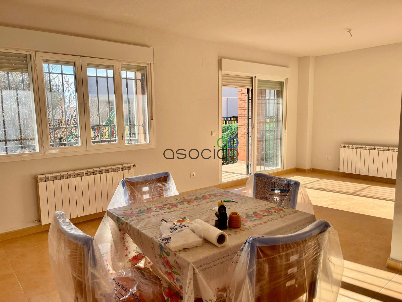 - Planta baja: desde el porche delantero, accedemos al recibidor que da paso al aseo exterior, a la cocina (muy cuadrada y amplia, que no está amueblada, ya que la vivienda nunca se ha habitado de manera regular) y al salón comedor. Orientado al sureste, muy luminoso y desde el que salimos al jardín.