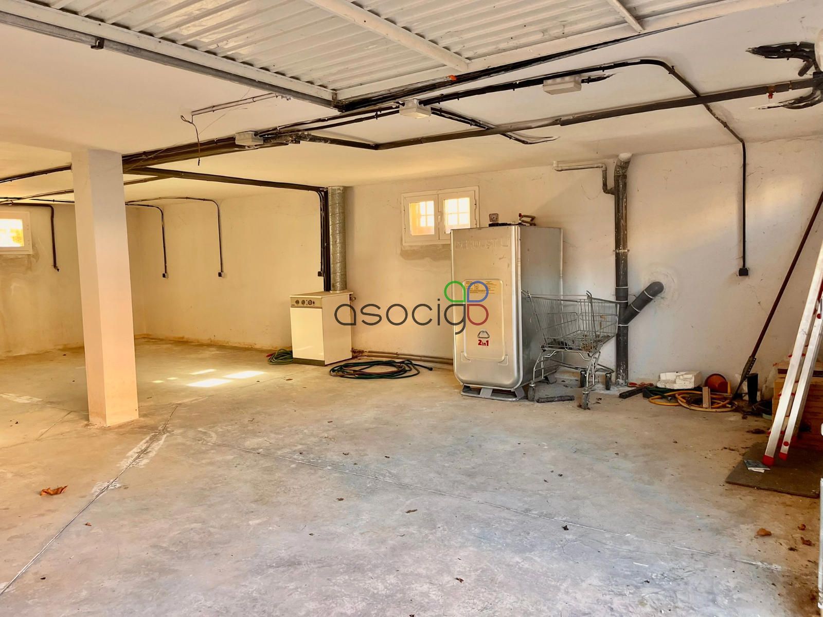 - Garaje de 74m2 en el que caben perfectamente 3 coches. Podrás guardar tantas herramientas como necesites, habilitar una pequeña bodega o aprovechar el espacio diáfano. Se encuenta el depósito y la caldera de gasóil.
